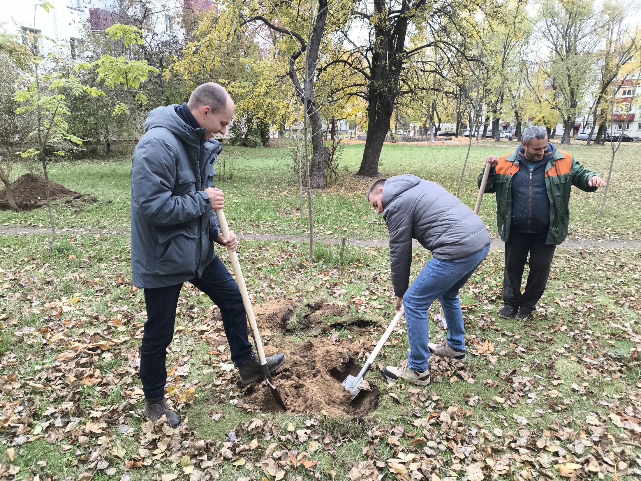 Сотрудники инспекции Департамента контроля и надзора за строительством по г. Минску совместно с УП "Зеленстрой Партизанского района г. Минска" 25 октября 2024 г. приняли участие в посадке новых деревьев в жилом квартале по ул. Фроликова в г. Минске.