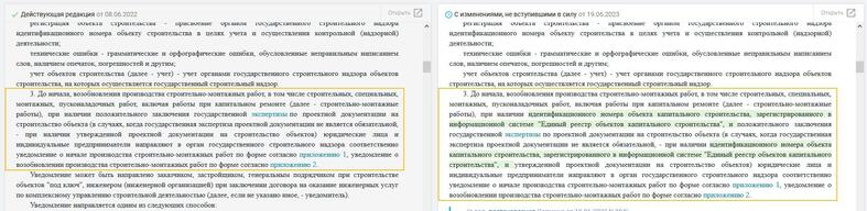 Так в соответствии с подпунктом 2.2 пункта 2 постановления № 394 часть первая пункта 3 Положения о порядке направления уведомлений о производстве строительно-монтажных работ, утвержденного постановлением № 343, после слов «при наличии» дополняется словами «идентификационного номера объекта капитального строительства, зарегистрированного в информационной системе «Единый реестр объектов капитального строительства», и».