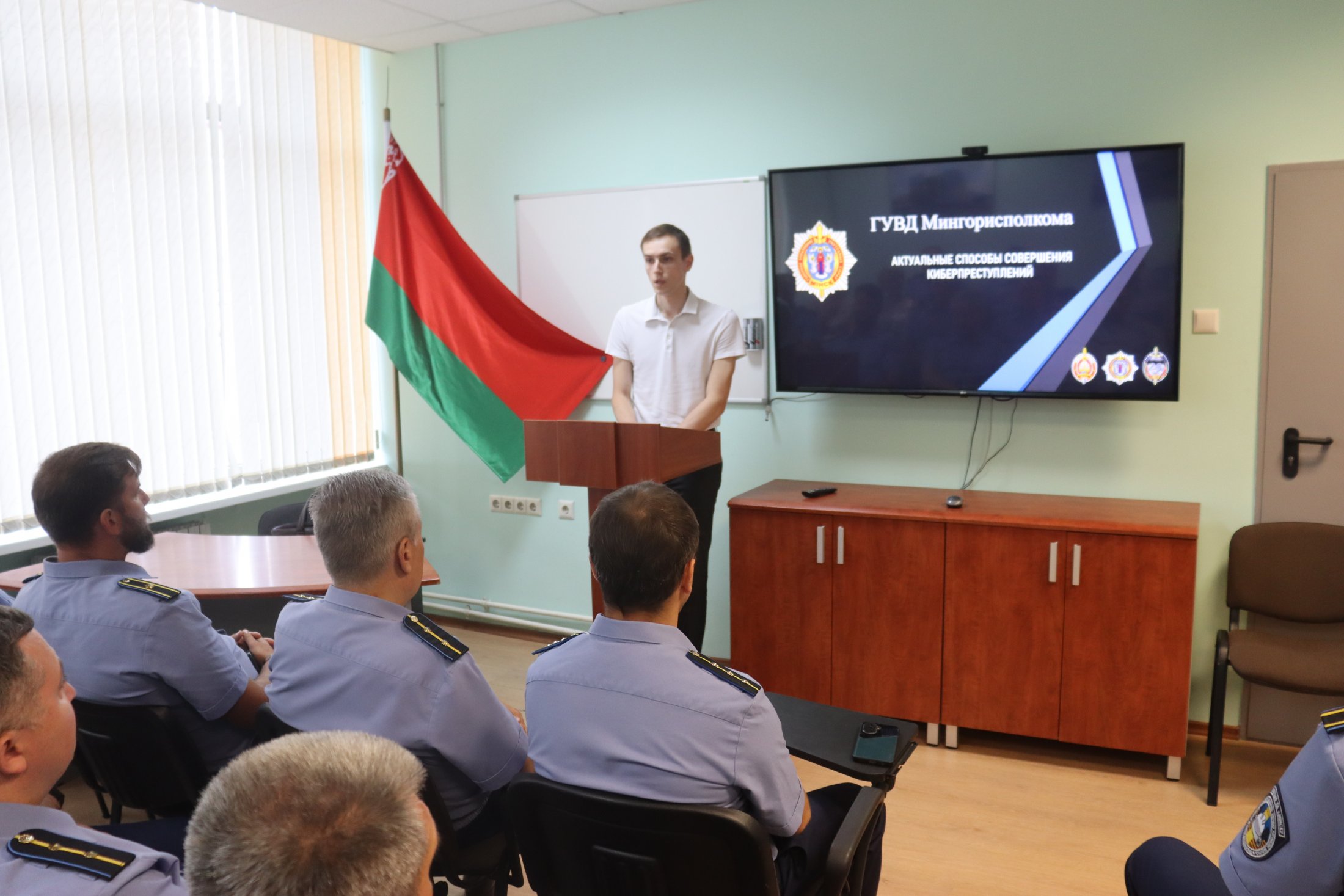 В её проведении принял участие старший оперуполномоченный по особо важным делам управления по противодействию киберпреступлениям ГУВД Мингорисполкома Петрович А.А., который ознакомил сотрудников инспекции с основными видами киберпреступлений, причинах, способствующих их возникновению (в том числе низкая техническая и правовая грамотность населения), способах противодействия таким преступлениям, избежания в их вовлечение, в том числе в качестве жертвы.
