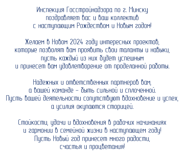 Поздравление Инспекции Госстройнадзора по г. Минску с Новым 2024 годом!