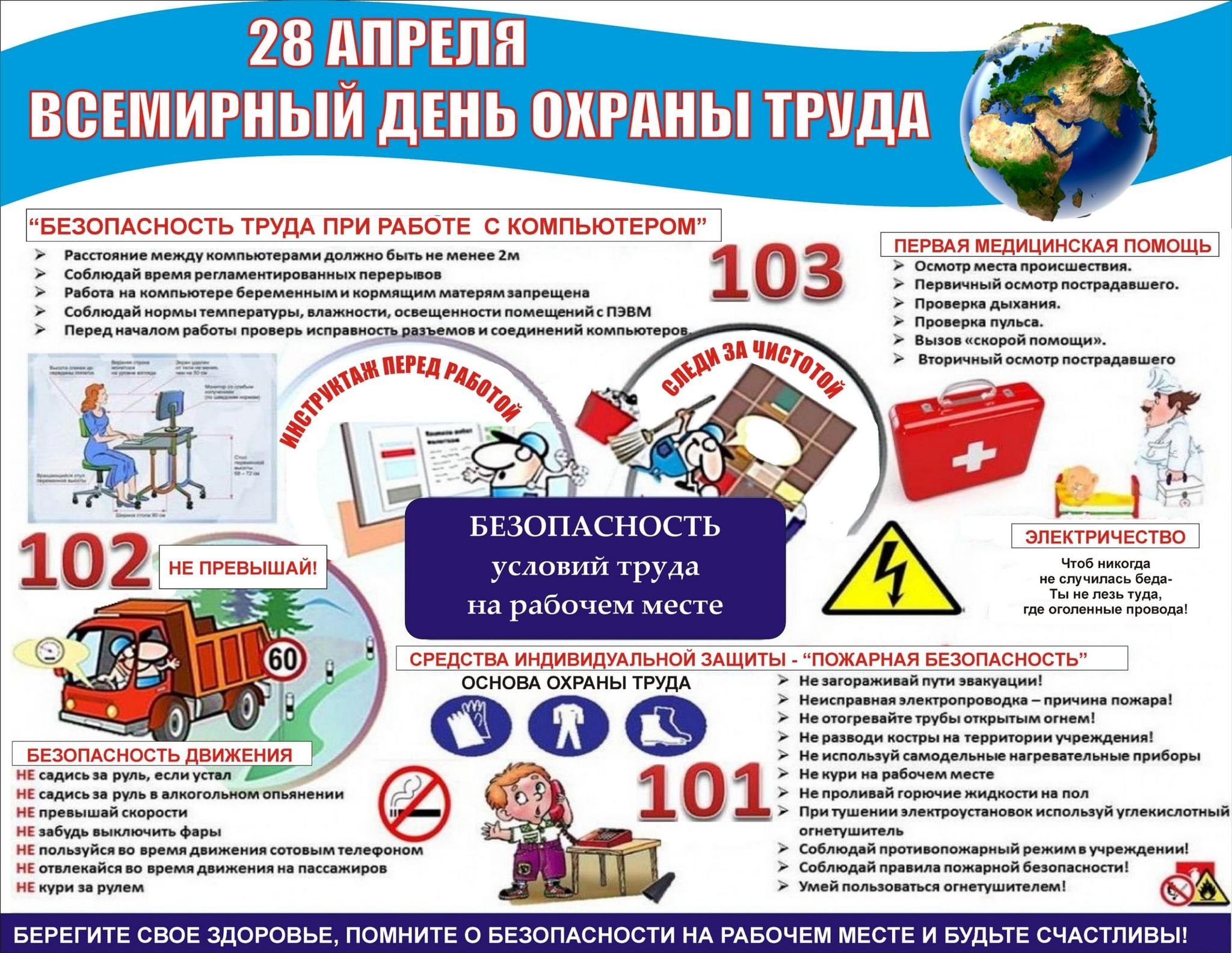 В инспекции Департамента контроля и надзора за строительством по г. Минску 30.04.2025 проведены мероприятия, посвященные Всемирному дню охраны труда. Сотрудники ознакомлены с тематическими материалами на эту тему, в том числе правилами работы в офисе, действиями на случай возникновения пожара, транспортной безопасностью.
