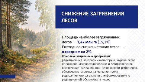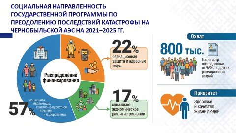 Кроме того, «чернобыльские» мероприятия интегрированы в государственные программы нового цикла: «Общество равных возможностей», «Беларусь интеллектуальная», «Здоровье нации», «АПК будущего», «Устойчивая энергетика и энергоэффективность», «Строительство жилья», «Комфортное жилье и благоприятная среда» на 2026–2030 гг.