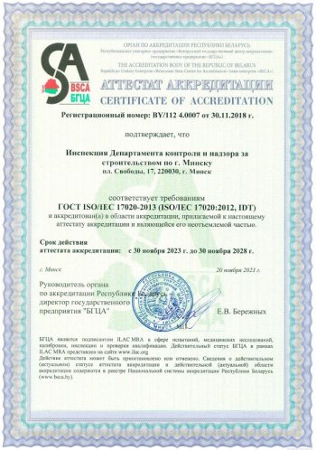 Згодна з вышэйпазначыным дакументам органы дзяржаўнага будаўнічага нагляду не ўключаны ў пералік кантрольных (наглядных) органаў, упаўнаважаных праводзіць праверкі. Кантрольныя (наглядныя) мерапрыемствы інспекцыі маюць прафілактычную і папераджальную накіраванасць і праводзяцца ў форме мерапрыемстваў тэхнічнага (тэхналагічнага, паверачнага) характэру.