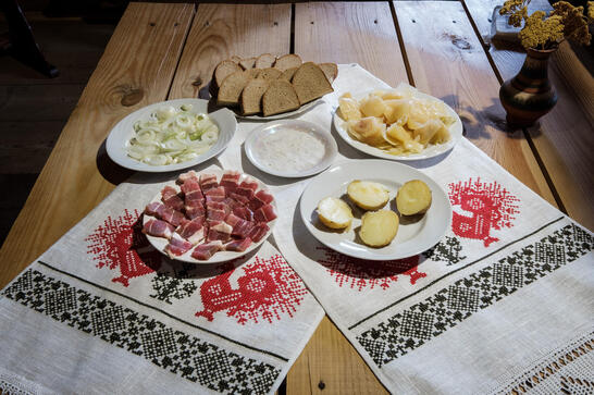 Особое удовольствие и доставит дегустация белорусских продуктов и напитков: свежевыпеченный хлеб, вкуснейшее сало, квашеная капуста, сыр, квас и многое другое, все приготовленное по традиционным рецептам, сохранившимся с давних времен.