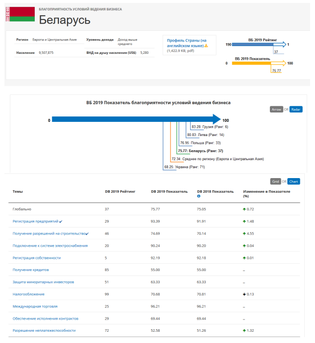 В опубликованном отчете группы The Doing Business Team Всемирного Банка показатель Республики Беларусь в теме «Получение разрешений на строительство» увеличился на 4.55% (самое высокое увеличение среди других показателей), что привело в совокупности с другими показателями к повышению общего рейтинга нашего государства по благоприятности условий ведения бизнеса.
