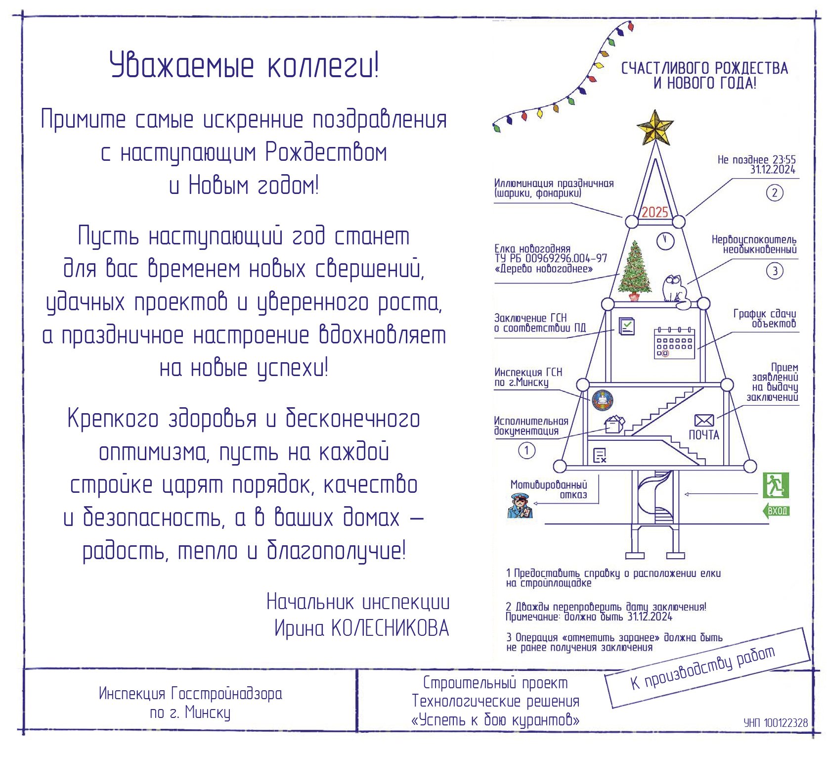 Поздравление инспекции Департамента контроля и надзора за строительством по г. Минску с Рождеством и наступающим 2025 годом