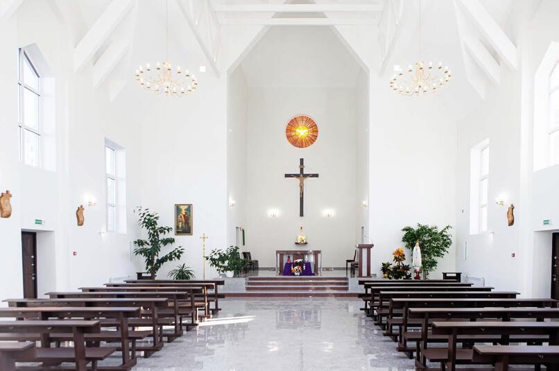 — Посмотрите, совсем недавно на стенах установили небольшие деревянные резные барельефные изображения, — показывает настоятель. — Это крестный путь, 14 стояний от момента ареста Христа до Его смерти на кресте. Сейчас завершается изготовление деревянного конфессионала (исповедальни), который будет размещен в храме. В будущем в костёле будут обустроены боковые алтари: Божьей Матери Фатимской и св. Иоанна Крестителя. Ведь каждый месяц по 13-м числам мы проводим службу в честь Матери Божьей Фатимской, а 24-го числа каждого месяца у нас совершается служба в честь св. Иоанна Крестителя об исцелении от различных зависимостей (алкогольной, никотиновой, наркотической, игровой и иных).