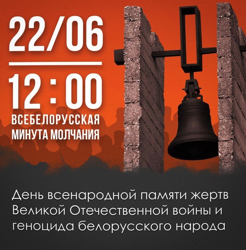 Ровно в полдень будет объявлена общенациональная минута молчания. Скорбным эхом в память о жертвах Великой Отечественной войны и геноцида белорусского народа прозвучат удары метронома.