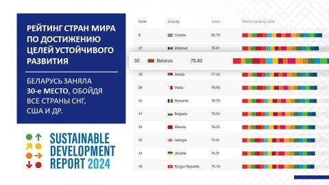 К слову, недавно опубликован рейтинг стран мира по достижению Целей устойчивого развития (искоренение нищеты, решение экологических, социальных проблем). Беларусь заняла 30-е место, обойдя все страны СНГ, а также США.