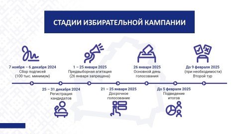 С 1 по 25 января 2025 г. будет проводиться предвыборная агитация, самый активный и ответственный этап избирательной кампании. В день голосования, 26 января, агитация запрещена законодательством.